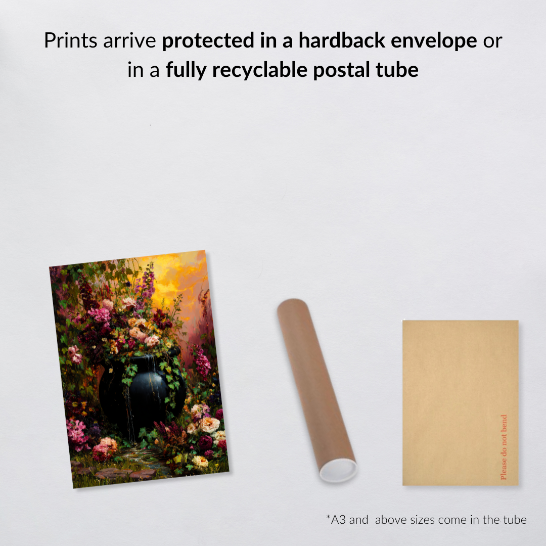 • Printed using a professional large format printer with top quality colour vibrancy pigment inks & 250gsm satin high quality poster paper that ensures a vivid, sharp and quality prints that will last a lifetime behind glass.